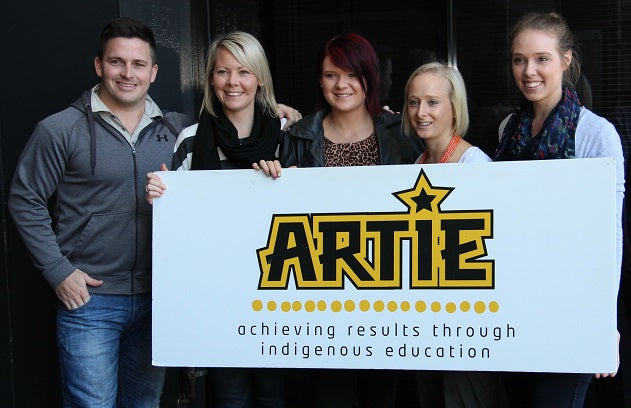 FOGS (Former Origin Greats) and A.R.T.I.E. (Achieving results Through Indigenous Education) offices at Suncorp stadium. First photo is with Former Origin Great and executive chairman of FOGS Gene Miles and Matt from the A.R.T.I.E. team. Second photo is with the A.R.T.I.E. team and the painting I donated. The artwork will be used on T-shirts, drink bottles, pencil cases, head phones etc as encouragement rewards for the ARTIE students.