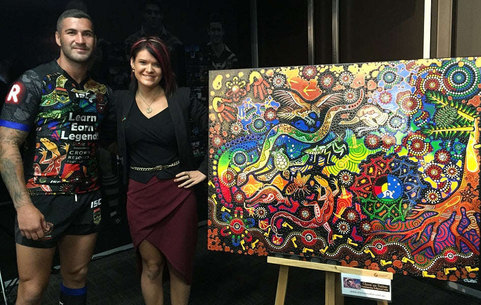 NRL's All Stars Week in Newcastle where my artworks was used on the Indigenous Men's and Women's jerseys for the 3rd year in a row as well as tablecloths, supporter merchandise, footballs etc.