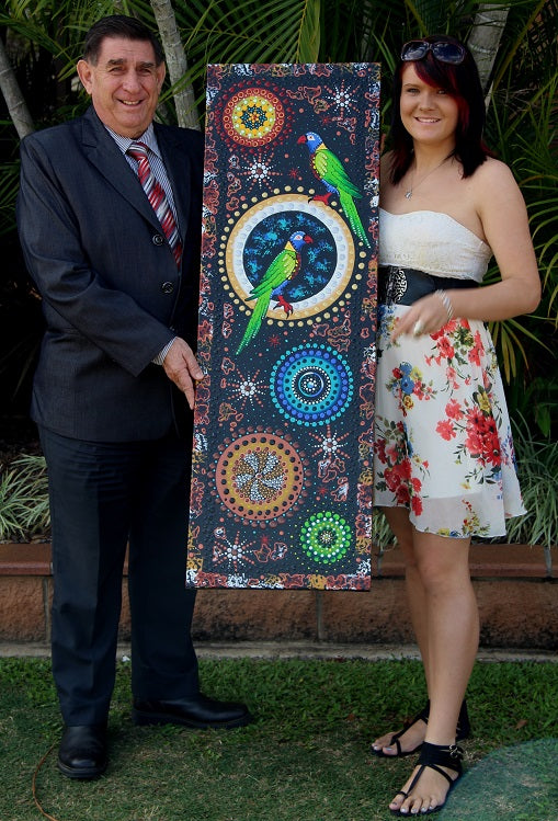 Photo taken with Bundaberg Mayor Cr Mal Forman with the painting and souvenirs I donated to the Mayoral Chaplaincy Support Breakfast for 2013, it was again the major prize for the fundraiser.