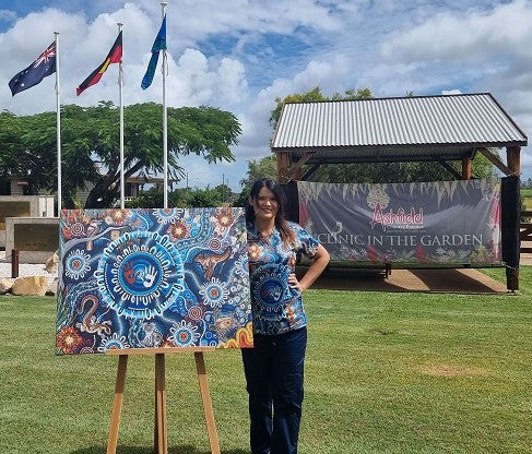 Chern'ee's Aboriginal painting design turned into Doctors and Nurses Scrubs.