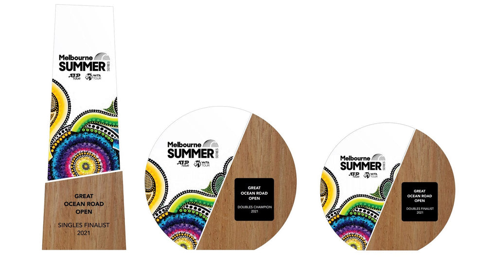 Chern'ee's artwork has been used for the 2021 Tennis Australia's Summer Series trophies including a more recent artwork featuring an echidna.