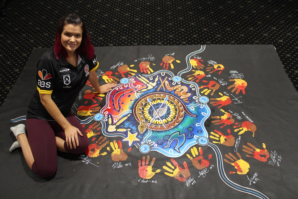 Chern'ee was thrilled to officially launch Team 18's Indigenous round artwork in Melbourne.