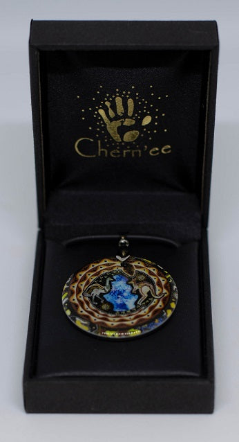 This beautiful iron ore necklace features my artwork, has an adjustable metal clasp and is beautifully gift boxed with my logo which is your assurance of a quality product. This design is called 'Ajarku Murruu' in the Kalkadoon language which means 'All One Country'. The artwork on this necklace has been used from a painting that was gifted to their Royal Highnesses The Duke and Dutchess of Cambridge during their Royal visit to Australia in 2014. The original painting hangs in the Royal Collection at Buckingham Palace.