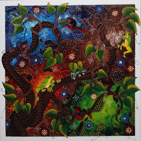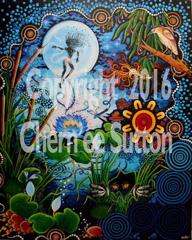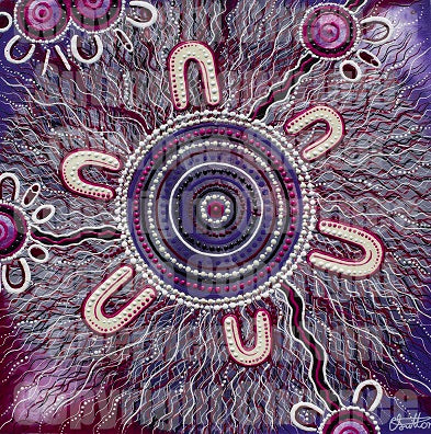 Painting and design donated to the Indigenous Lawyers Association of Queensland. The design will be used for the World Indigenous Lawyers Conference held in Brisbane in 2014