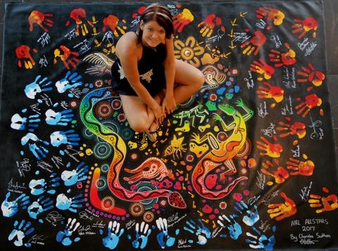 Painted a large painting with the Indigenous All Stars team and the All Stars Team all placing their handprints and signatures on the painting. The painting was 3m long and is being auctioned off with all proceeds going to AIME which is an Indigenous mentoring program