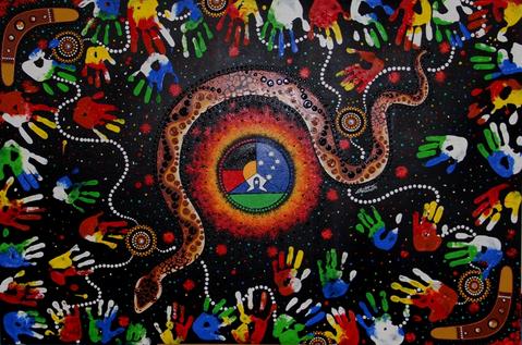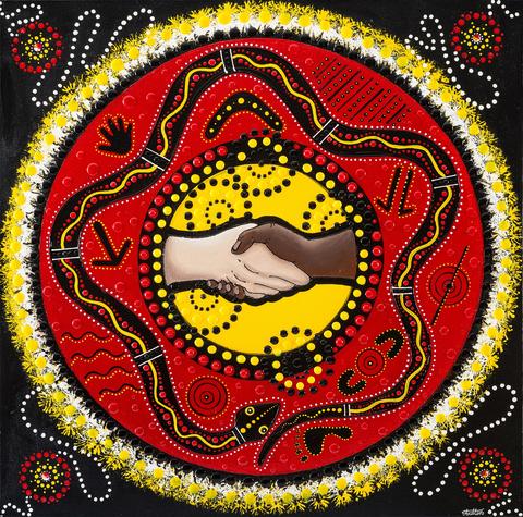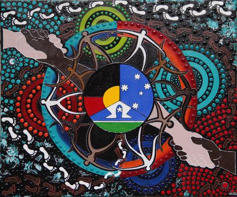 Reconciliation painting called "Walking Together In One Country" donated to Caritas Australia 2013