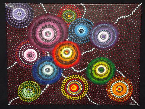 Painting donated to "Artoriginal" Beyond Billabong Foundations Inaugural Indigenous Art Exhibition 2012, painting was sold for $3,500.00 before it was exhibited and hung.