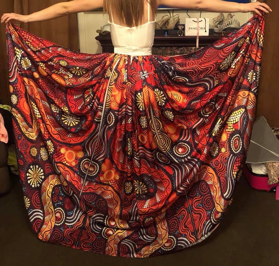 Artwork donated to Miss Teen Australia for use on a dress for a beauty pageant in the U.S.