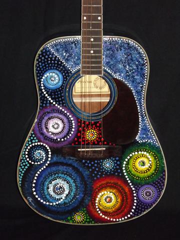 Painted guitar donated to the Bundaberg Womens Indigenous Football team for a fundraiser 2011
