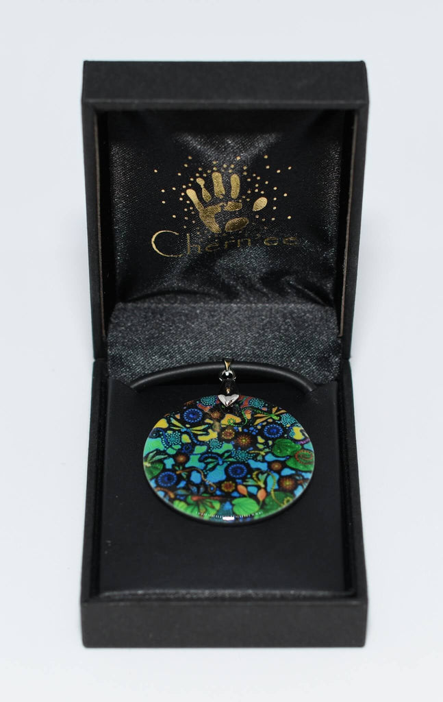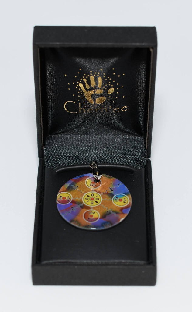 This beautiful iron ore necklace features my artwork, has an adjustable metal clasp and is beautifully gift boxed with my logo which is your assurance of a quality product. This design is called "Malkanuru" in the Kalkadoon language which means "Seven Sisters".